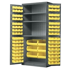 Product Description : From the ManufacturerAkro-Mils AC3624 Cabinets provide protection of parts and equipment from dust, damage, and theft. Akro-Mils products save time and money by helping to increase material handling efficiency in virtually any industry. Our broad range of storage, organization and transport products are used to shorten assembly times, maintain accurate inventories, optimize storage space and improve parts protection. Our mission at Akro-Mils is a commitment to manufacturing innovative storage and material handling products of uncompromising quality at a fair price. We support this commitment with professional representation and consistent, superior service to meet the needs of our customers. For quality products backed by more than 60 years of reliable delivery and responsive customer service, we invite you to turn to the Akro-Mils advantage. Akro-Mils products save time and money by helping to increase material handling efficiency in virtually any industry. Our broad range of storage, organization and transport products are used to shorten assembly times, maintain accurate inventories, optimize storage space and improve parts protection. Our mission at Akro-Mils is a commitment to manufacturing innovative storage and material handling products of uncompromising quality at a fair price. We support this commitment with professional representation and consistent, superior service to meet the needs of our customers. For quality products backed by more than 60 years of reliable delivery and responsive customer service, we invite you to turn to the Akro-Mils advantage. Akro-Mils AC3624 Y3AS Steel Storage Cabinet with Shelves, Louvered Panels contains 102 Yellow AkroBins and is 36-Inch Wide by 24-Inch Deep by 78-Inch High Product Description : Store all your supplies inside this AKRO-MILS 102-Akro-Bin Combination Bin Cabinet that features virtually unbreakable Akro-Bins and three 200-lb. capacity adjustable shelves.Bins suspend from louvered panels. 1000-lb. capacity overall. Cabinet has louvered door panels and three-point lock with 2 keys. 16-gauge steel. 36"Wx24"Dx78"H overall. Baked enamel finish.