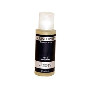 Product Description : Cristophe Beverly Hills Men's Grooming Travel Size Thickening Shampoo. Alpha Hydroxy formula promotes healthier hair by removing excess dirt, grease, residue and build-up. Enriched with Biotin, Vitamin C,and creatine to swell hair shaft and create thicker, fuller hair. Restores strength and texture. 2 oz bottle of this wholesale bulk discount cheap travel hotel size shampoo. Made in USA.